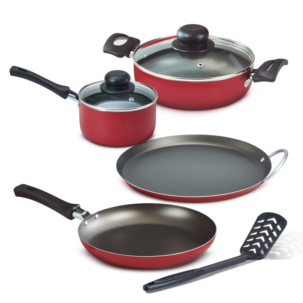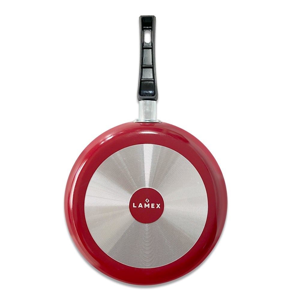 En la Batería Deli Cook Lamex encontrarás las piezas básicas y de mayor uso en una cocina tradicional. Está conformada por un sartén clásico de 24 cm, una caceola 20 cm con tapa de vidrio, un cazo de 16 cm con su tapa de vidrio, un práctico comal de 27 cm y una espatula de nylon