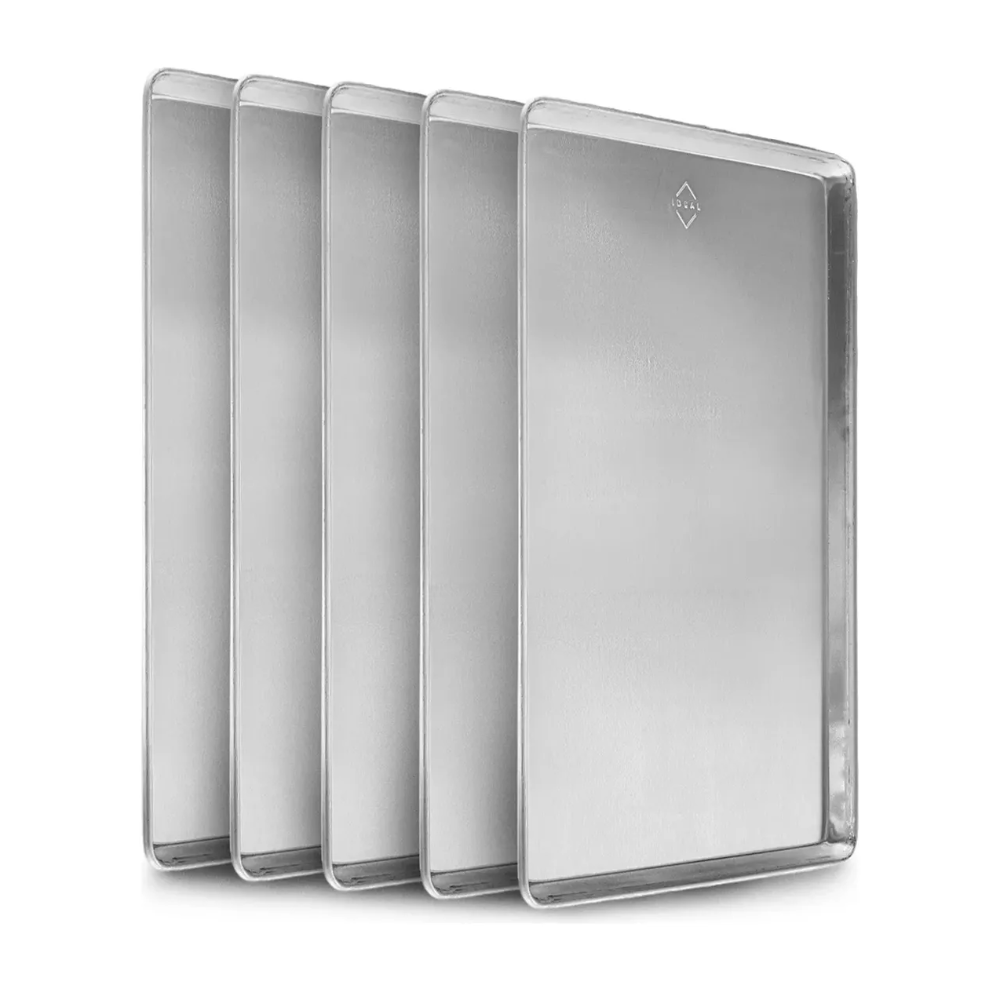 Paquete de 5 charolas de aluminio, rectangulres. Ideales para hornear. No aptas para lavavajillas.